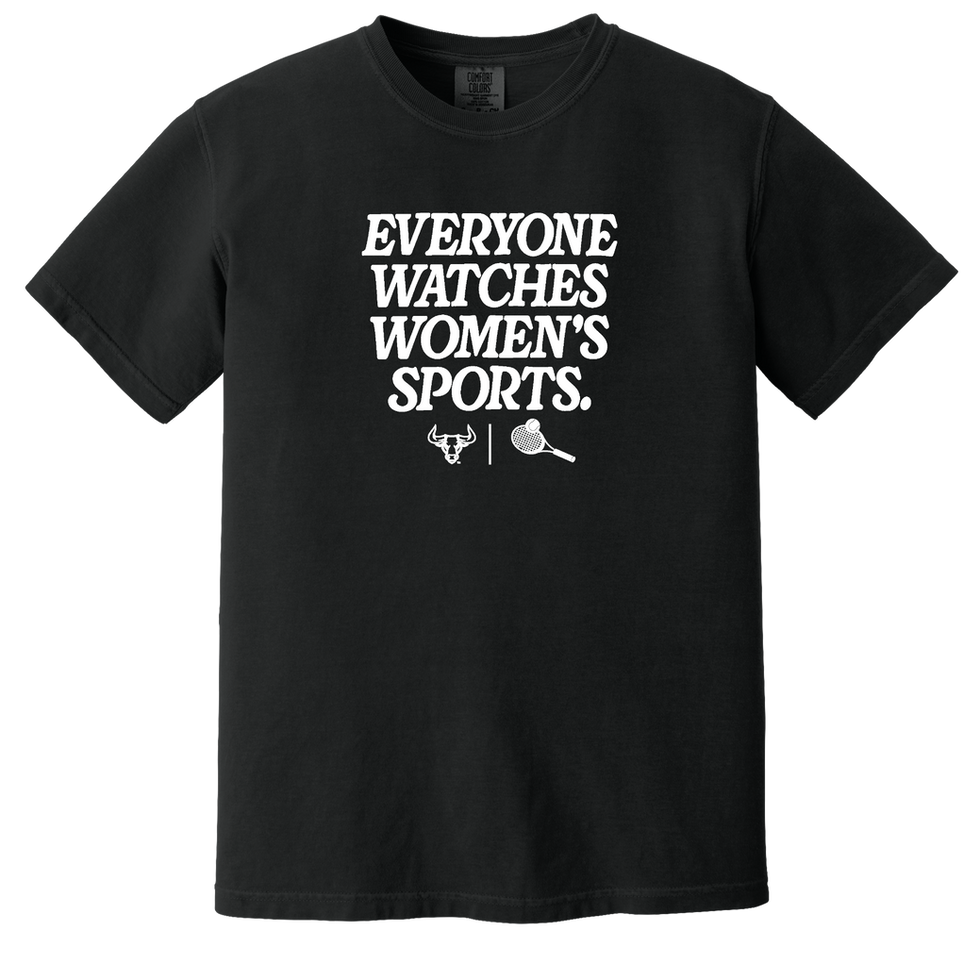 Celebrate the unstoppable rise of women's sports with the EVERYONE WATCHES WOMEN'S SPORTS™ TENNIS heavyweight tee offers a structured feel and lasting comfort. Designed for those who seek quality and style, this oversized cotton tee is perfect for all-day wear; we recommend sizing down for a perfect fit. Proudly support local and women's sports with this standout piece, embodying the values of community and excellence. Don't miss out on wearing a symbol of empowerment and passion!